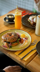 Nina is a brunch restaurant and specialty coffee cafe in Parque das Nações, Lisbon. All-day contemporary brunch made with fresh ingredients: artisanal bread and pastries baked in-house, locally roasted specialty coffee, handmade cookies, and monthly menu with fresh seasonal fruits. Our Black Garlic Cheeseburger has been called the best in Lisbon by our guests, together with the Samurai Toast with fresh marinated tuna or our craft Croissant Benedict. Riverside terrace overlooking the Tagus. Pet-friendly - dogs welcome indoors and on terrace. Kids corner with toys, children's menu and baby-friendly snacks. Free Wi-Fi. Walk-in only. 5 min from Oriente Station, 15 min from Lisbon Airport. Open daily. 4.9★ from 800+ Google reviews.